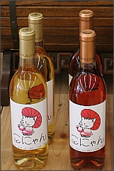 姉妹都市鳥取県北栄町から北条ワインのこにゃんラベルバージョン。