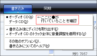 「オーディオCD」と書かれた左に「●」が付いている事を確認します。